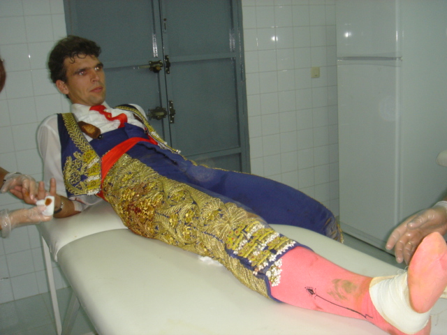 9 deSeptiembre de 2006 Fernando Pereira Torres Novillero que sufre un esguince de tobillo el día anterior a su presentación en La Algaba. Hace el paseillo y en su ctuación en el 1º novillo sufre cogida y contusión severa y esguince en el tobillo contra lateral.( derecho) A la exploración dolor agudo e impotencia funcional sin hallazgos que hagan pensar en fractura. Contra todo pronóstico lidia al 2º novillo con los dos pies fastidiados y es cuando mejor torea y triunfa en su ciudad. Parte de lesiones |