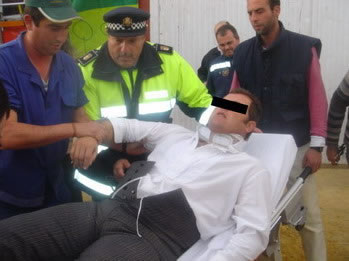 Síndrome de latigazo cervical. Parestesia en miembros superiores, especialmente en lado dcho. Contusión craneal y dolor selectivo en rama ascendente de maxilar dcho.; todo por caída de caballo de picar y posterior aplastamiento por el mismo.