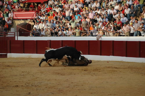 13 -5 -07 Durante el tercio de banderillas, de la lidia del 5º toro, ingresó en esta enfermería y fue asistido D. Pablo Hermoso de Mendoza de las lesiones que a continuación se especifican: Posible fractura 1/3 distal miembro inferior izquierdo con posibles afectación de tibia y peroné. Constantes normales. Miembro inestable, no dolor excesivo, ni frialdad distal, riego sanguíneo distal conservado, se inmoviliza con férula neumática y se traslada bajo control médico a clínica Sagrado Corazón de Sevilla. Pronóstico grave. Dr. D. Raúl Morales Maruri. |