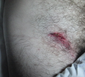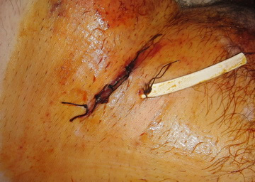 | Febrero 2010 . Capea en su ganaderia . Afectados planos superficiales y profundos cercanos al nacimiento de la Vena Safena int en el cayado femoral. |