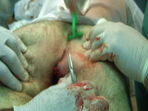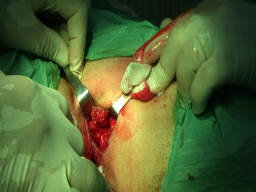 Se explora concienzudamente la herida. Se eliminan colgajos y detritus, se hace hemostasia cuidadosa, se pone drenaje de Penrrose y se empaca la herida.