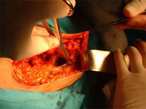 El componente hemorrágico es importante. Se interviene en enfermería de la plaza y se decide trasladarla al H.U.S. para revisión a fondo tras empacamiento de la herida y masas musculares partidas.