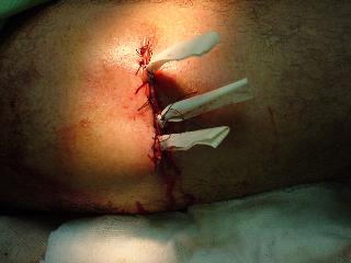 muscular y se dejan tres drenajes de penrrose a través de la herida.