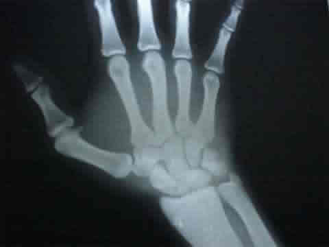 Tras estudio y Rx. se le diagnostica una grave fractura de escafoides que asienta sobre una mano muy sufrida por causa de la espada y que ya de antemano presentaba una artrosis post traumática que va a más.
