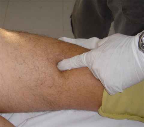 11 de septiembre 04 La Algaba. Pedro Muriel Delgado Pedro Muriel fue cogido y volteado aparatosamente cuando ponía un buen par de banderillas en el que expuso como siempre con gran generosidad. Pasa a la enfermería de la plaza de toros de La Algaba y le diagnosticamos una cornada cerrada en la cara int tercio medio de muslo Izquierdo. Se observa en el detalle de la imagen, la fovea que deja la impresión digital de la cornada en la piel y anejos del muslo. No encontramos sello del pitón marcado en la zona, ni tampoco encontramos inmediatamente el consabido hematoma. Y además para evitarlo, administramos crioterapia inmediata, tratamiento anti inflamatorio, vendaje y reposo funcional del miembro. Ante esta perspectiva se decide no intervenir ya que se supone una recuperación sin contratiempos. Un brindis por nuestro viejo amigo Pedro Muriel Delgado en la última corrida de su vida laboral activa. Por un amigo con pundonor y clase |