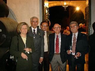 Mesa de trabajo de confraternización: Dr. Carnevali ( Venezuela) Dr. León ( Perú ) Dr. Olague ( Méjico) Dr. Muñoz ( Méjico ) Dr. Morales ( España ) Dr. Olmeda ( España ) Dr. Barrera ( Colombia ) Dr. Malpica ( Colombia. Detrás de la cámara Dr. Olano (Colombia) Alternando en las bodegas del Puerto. La delegación Colombiana con el Dr. D. Virgilio Olano ( miembro fundador) a la cabeza, los Drs. Malpica y Barrera ( tras de la cámara) y Drs. Morales y Muñoz de la delegación española y esposas. Próximo Congreso internacional en Morelia. Méjico. |
