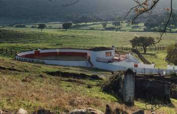 | Entrada a la finca "Monte San Miguel", Aracena (Huelva) | Plaza de tientas |