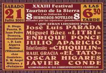 Algarra, Parladé, Guateles, Guadalest, Villamarta, Millares, dos de Puerta y un sobrero de Manolo González. Destacando tercero, cuarto, quinto y el sobrero.