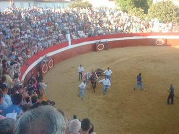 Más tarde se desembarcaron los toros en La Ganadería de Concha y Sierra en la finca "El Campillo" termino municipal de San Bartolomé de la Torres, los toros unos hermosos ejemplares y con la capa característica de los concha y sierra, así que el domingo que viene el espectáculo está asegurado.