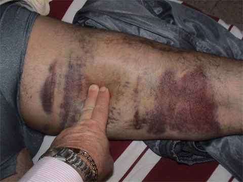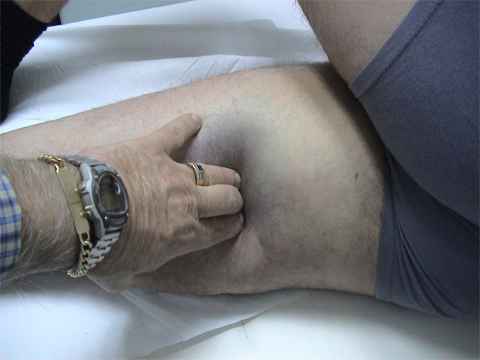 gran tumefacción del muslo, hematoma incipiente en la zona y dolorimiento